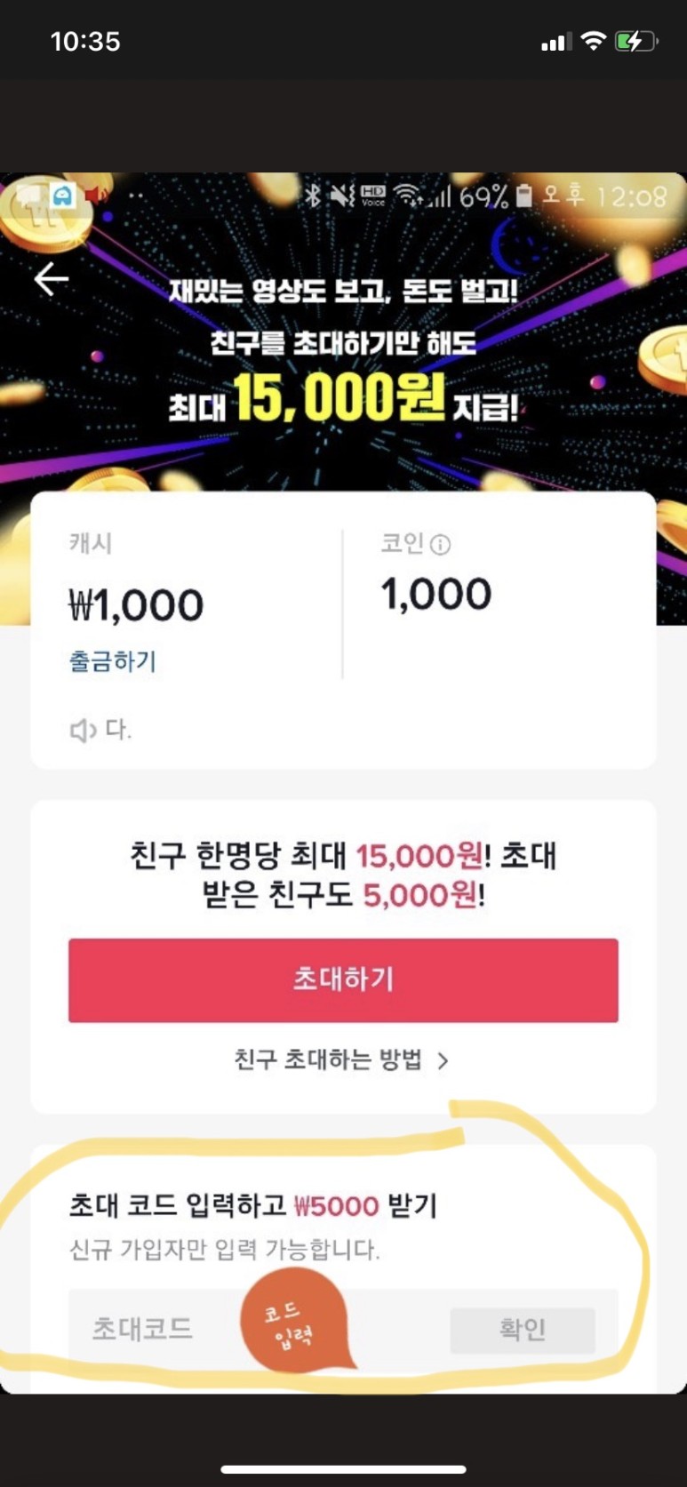 초대 코드를 입력안하면 돈이 들어오지 않습니다. 또 출금 하려할때 성인맞냐고 물어보는데 아니오 하시면 안됩니다. 바로 기기밴됨